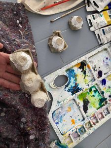 I paint the little egg carton shaped pieces with eyes.
