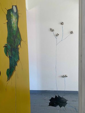 The main painted elements of the installation, will be trompe l’oeils, as openings to other worlds, to other dimensions in a religious or spiritual context.