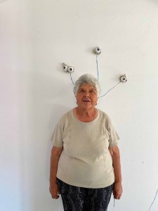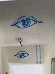 I want to glue the eyes on the walls of the corridor. Seated in the end of the corridor working, I will feel looked after, guarded by a myriad of eyes watching anyone approach. If you are arriving as a viewer, you will be observed, all these eyes are watching you.