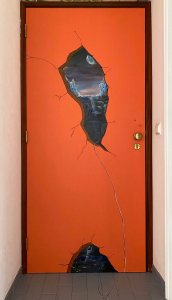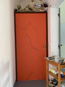 A few days later, I move on to the orange door- creating two cracks towards the darkness.