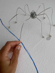 The idea to use spiders in this installation came from the research into Louise Bourgeois sculpture “Spider” and defining it as a drawing. Also, I am keen to use wire in this installation and a spider seems an easy shape to start with.