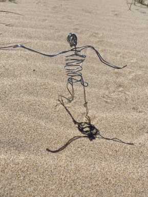 To be able to paint on the eyes, I cover the wire of the bodies with clay and let dry. I add a little penis to the masculine spider and breasts to the female 🙂
