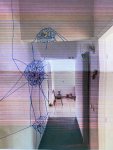 Many of the site specific installations in the MoMa collection rely a lot on large objects, like sofas or large cut outs in the space. In my narrow hallway, I will need to have a clear passage, but still want to include some 3Dobjects to give the installation a more tactile character. I do have a lot of space vertically, and can hang (small) objects from the ceiling. In any case, the work should direct the viewers gaze upwards.