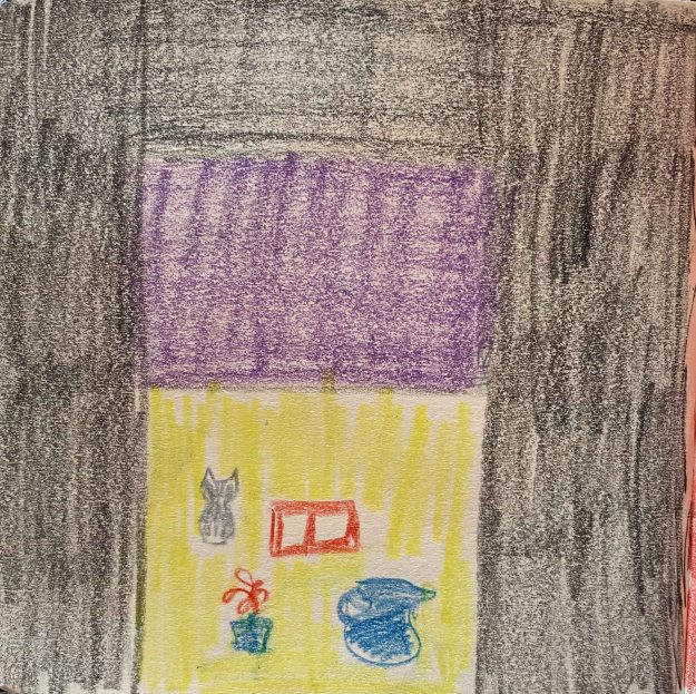I continue my exploration on A4 sheets with the coloured pencils and water that turns them into watercolours (unfortunately on too thin paper that wobbles)