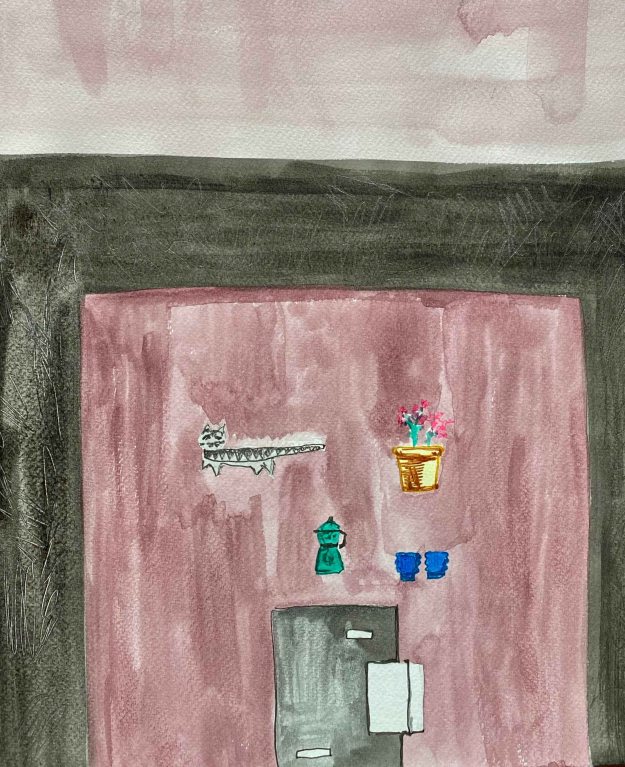 As a conclusion, I have used this exercise for a lot of intuitive trials and reflection on space and composition. It has been a lot of flapping around (also sleeping in five cities in 8 days), and I feel unsatisfied with the final outcomes. I feel like I have learnt some precious lessons about composition though, and definitely gained new respect for the art of Elisabeth Blackadder.