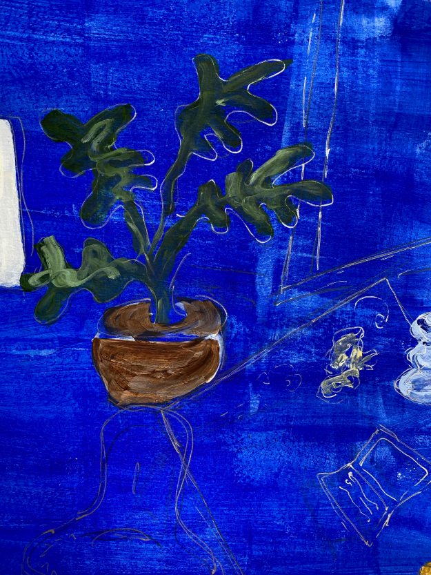 After studying the work of Elisabeth Blackadder, I will make a different piece inspired by Henri Matisse’s more sophisticated use of space and pattern.