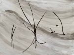 I use Indian ink and a thin brush to draw the lines formed by grasses sticking out of the sand and their sharp shadows in my various small sketchbooks: