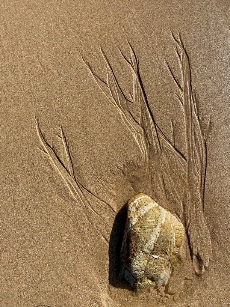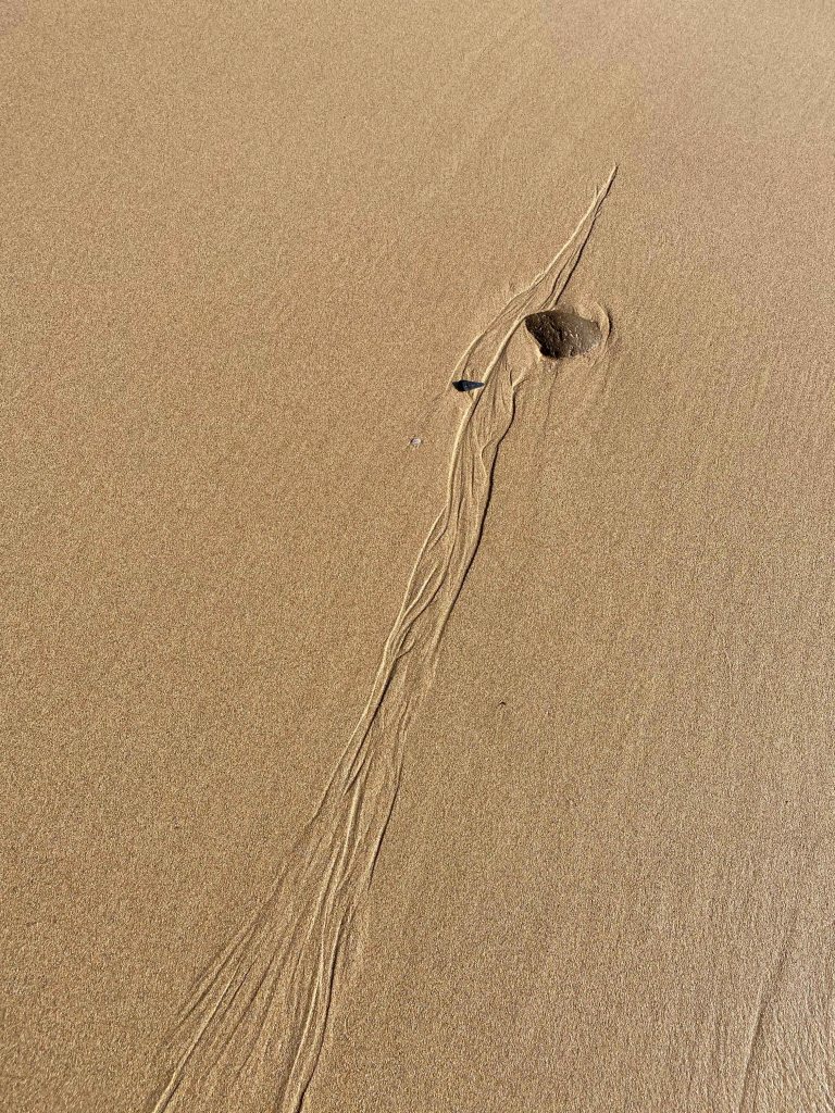 As it is finally, finally allowed to walk on the beach after a long quarantine, I immediately set off. The traces in the sand and debris washed ashore show endless possibilities of lines- thin delicate lines, thick, messy lines: