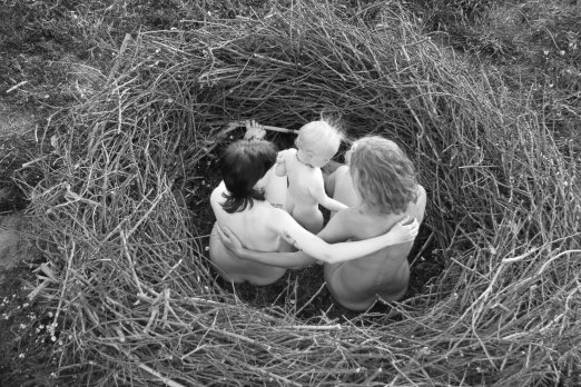 Inspired by the work of Ana Mendieta who uses her own naked body and the idea of that body merging with nature as a symbol of rebirth, or regeneration, we will use the bodies of our three generations of women here- we will sit in the nest with my daughter and granddaughter, naked on the earth that has welcomed us, in a ritual of landing safely. It also becomes a ritual of my daughter getting ready to leave the nest- it is time.