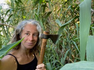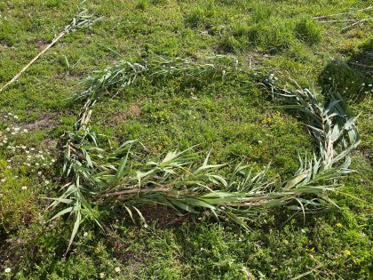 I need to build some sort of light frame to weave the branches onto, and have spotted some canes that have already fallen and are crushing a small fig tree: