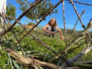 I spend many hours “fleshing out” the frame by weaving sticks and thickening the structure: