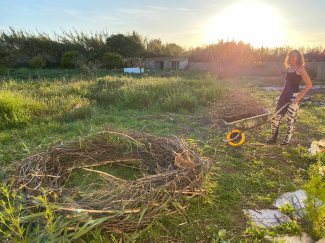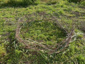 When I see it from the second floor the next morning, I feel real joy. I feel like I am making a statement that reconnects me to this specific place, with my scratched hands touching the earth and the branches from the trees grown here, and at the same time there is something so universal, in this need to create a nest, to order the messy branches into a circle that feels safe.