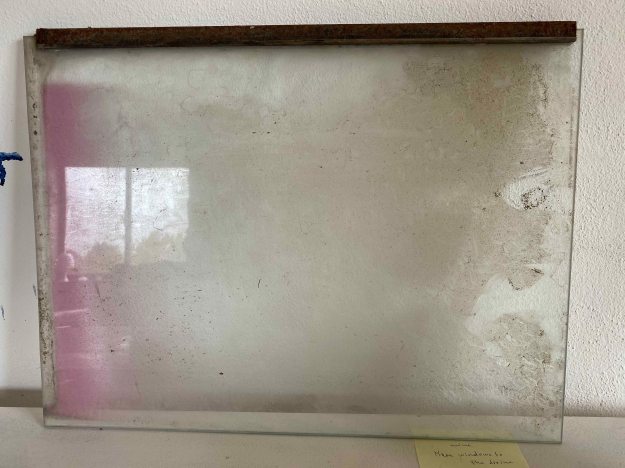 In some of the rooms, a solitary lampshade was left dangling when we arrived here. I have collected them and planned to use them both as a support to paint on and as a subject for still life.