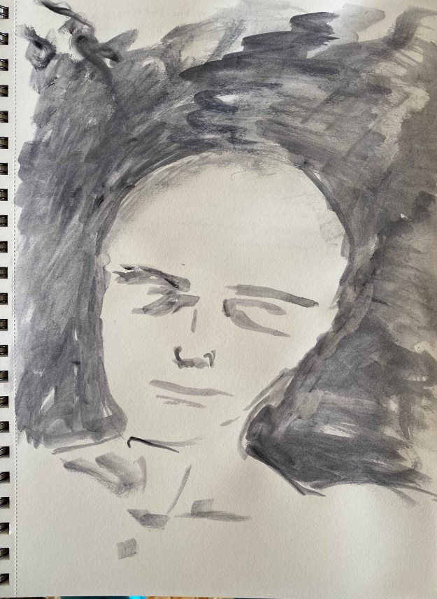 Sketches in Payne’s grey and Titanium White acrylics, A4: