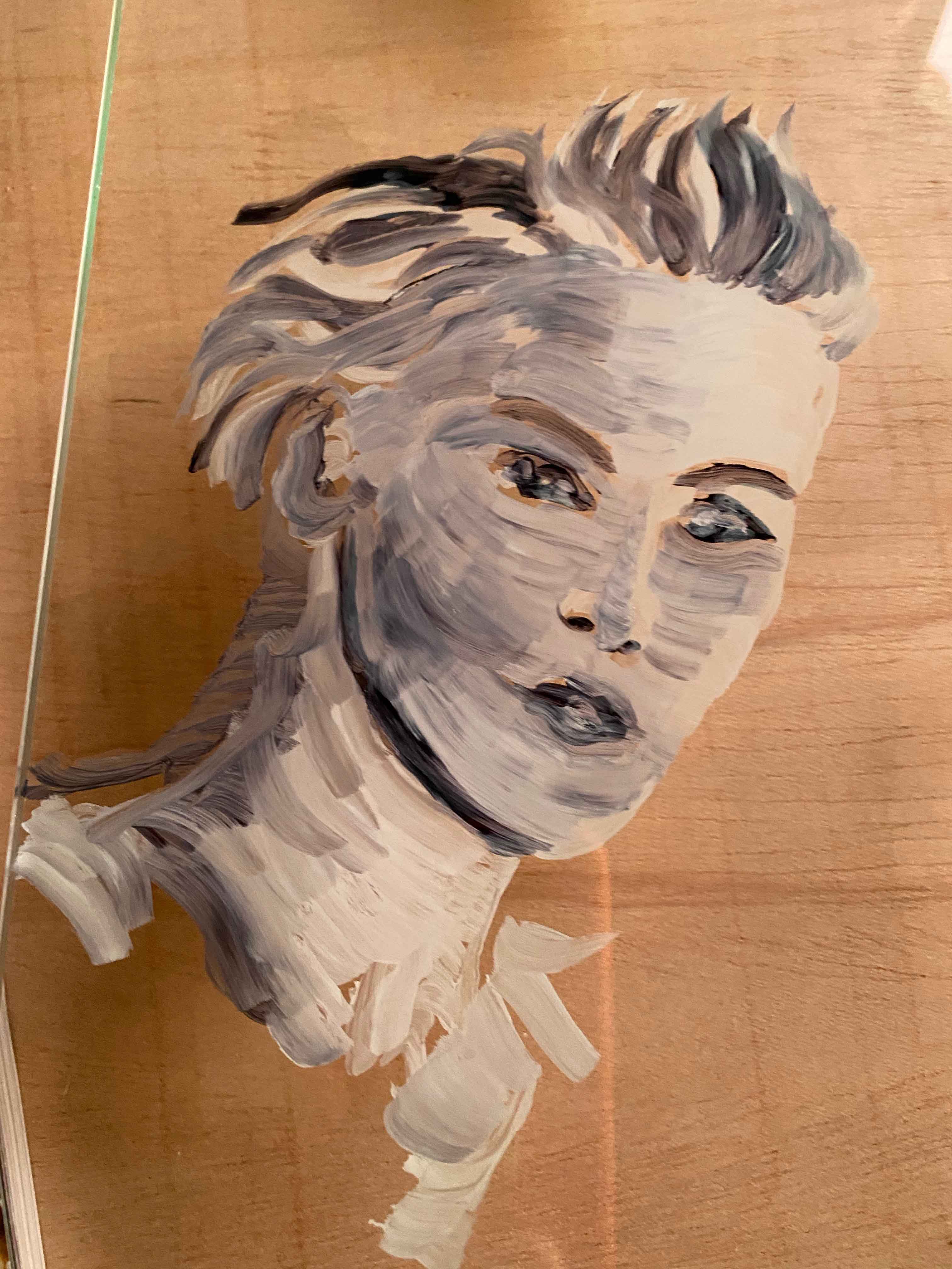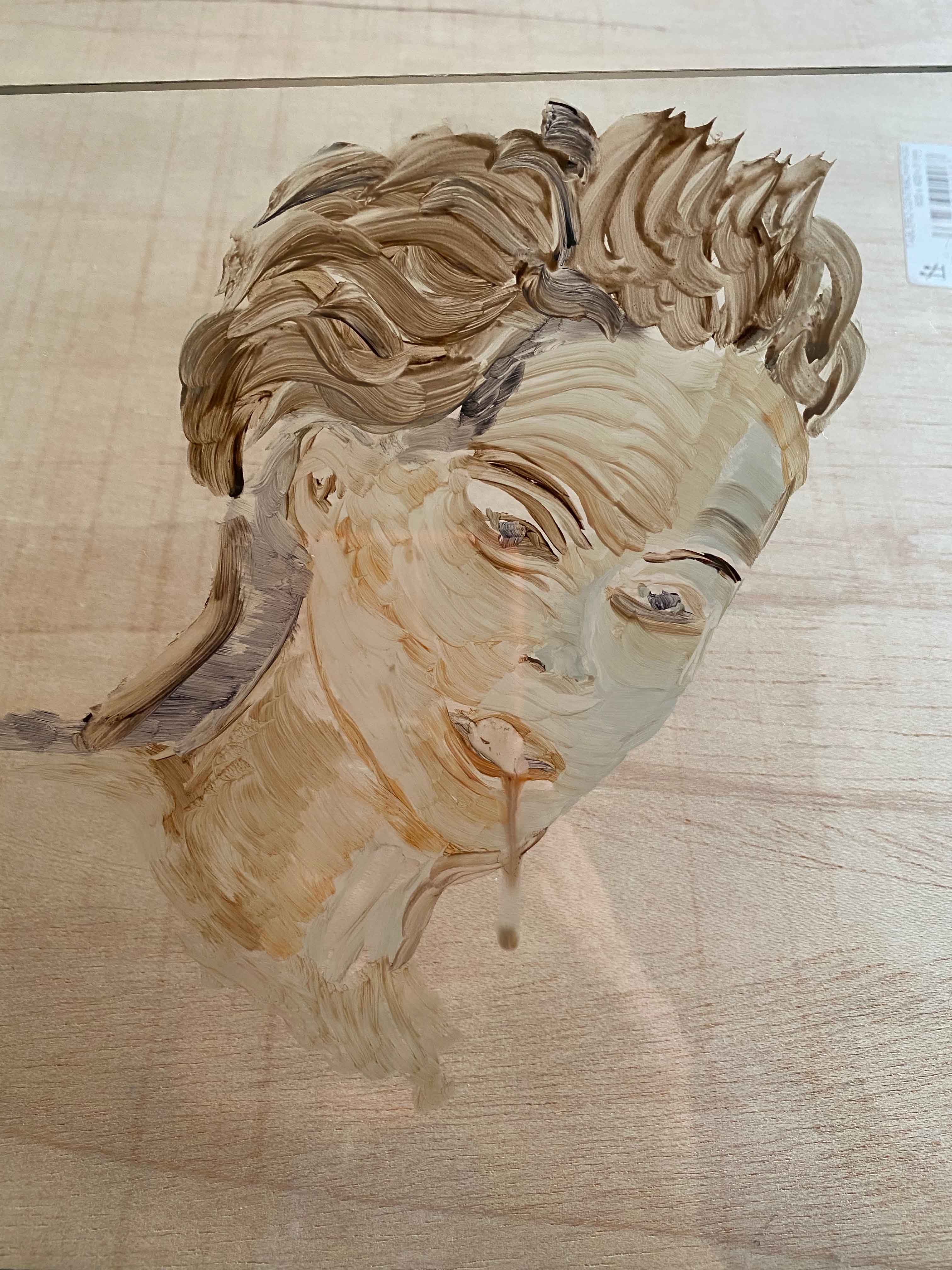 Once starting in oils, I struggle for a really long time with the background. I have the idea to use a camouflage pattern, but then smudge it, so it is a camouflaged camouflage pattern.