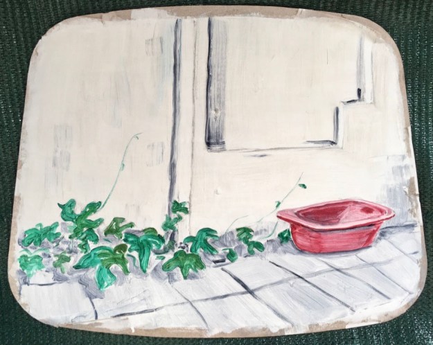 I would like to paint some glimpses of these sometimes tragic, sometimes surreal stories. I would like to use various strange objects that have been left here in the house and around as supports- like lace curtains or vases or lamp shades. I also found an incredible collection of various glass and would like to experiment with painting on them.