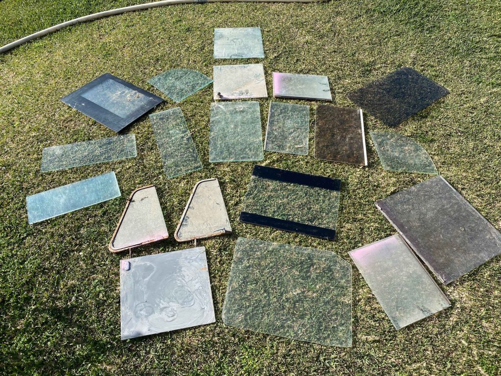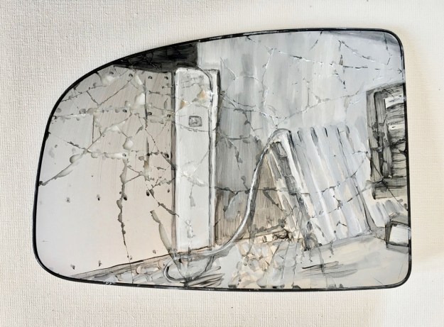 I have written another blogpost about all the glass I have found, and some of the pieces are clearly from a car. I decide to let other parts of the walls start with stories about the cars from which these glasses came- using this room as a sketchbook: