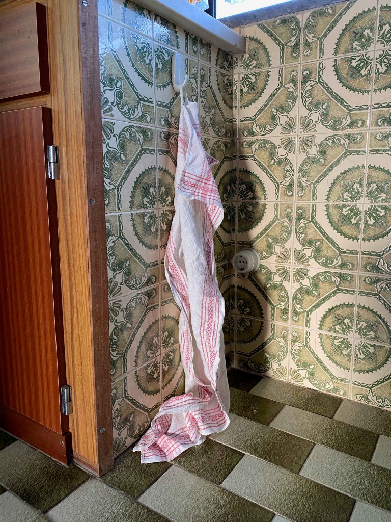 We have just bought a house in this same village and are in the process of renovating it totally. This house is so terribly ugly that it becomes quite fascinating- with an excessive use of tiles in various patterns contrasting with stark whitewashed walls and strange details.